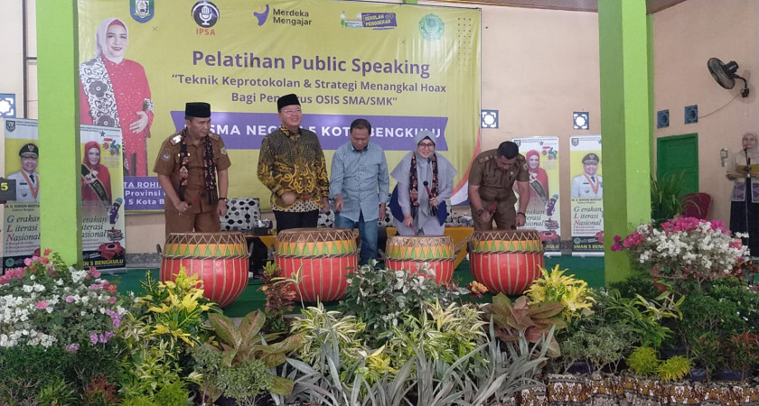 Dalam acara “Pelatihan Public Speaking” Teknik Keprotokolan dan Strategi Menantang Hoax Bagi Pengurus OSIS SMA/SMK, bapak Gubernur Provinsi Bengkulu membuka secara resmi acara tersebut.